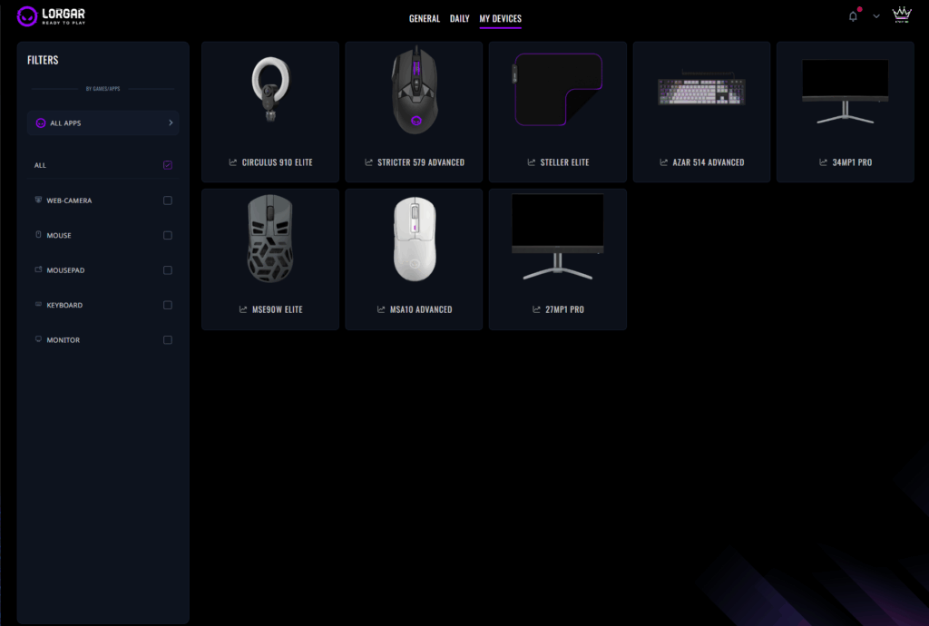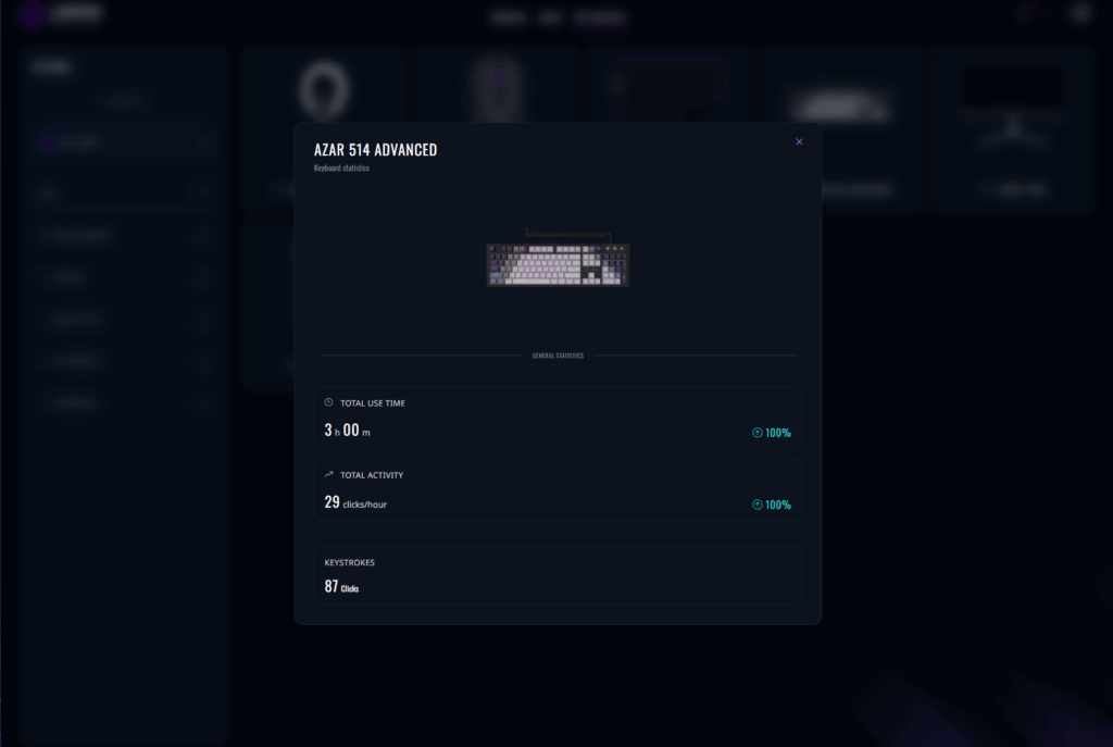 Аналітика не обмежується лише одним підключеним пристроєм. Ваша миша, клавіатура і навіть килимок для миші мають власний детальний профіль з повними даними. Чи ви ефективніші з певним обладнанням, ніж з іншим? Яке конкретне обладнання найбільше сприяє вашій загальній статистиці? Всі відповіді є всередині.