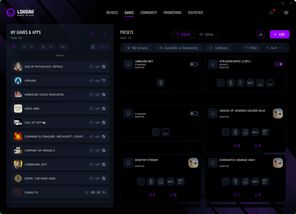 LORGAR PLATFORM доводить, що потужне не означає складне. Кожна функція автоматизації служить реальній меті – усуненню тертя між вами та вашими іграми. Все просто працює від моменту підключення пристрою до автоматичного перемикання пресетів між іграми.
