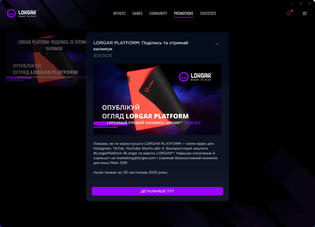 Центр сповіщень заслуговує на особливу увагу. Замість бомбардування спливаючими вікнами, все живе в одному місці. Системні оновлення, рекомендації пристроїв, поради щодо нових функцій – усе є логічно організованим та може бути вимкнено окремо. Перемикач «Інструкції до пристроїв» корисний тим, що він надає контекстні поради на основі того, що ви робите, не дратуючи. Новачок у створенні макросів чи обміні пресетами? Він запропонує процес. Досвідчений користувач LORGAR PLATFORM? Вимкніть це та працюйте спокійно.