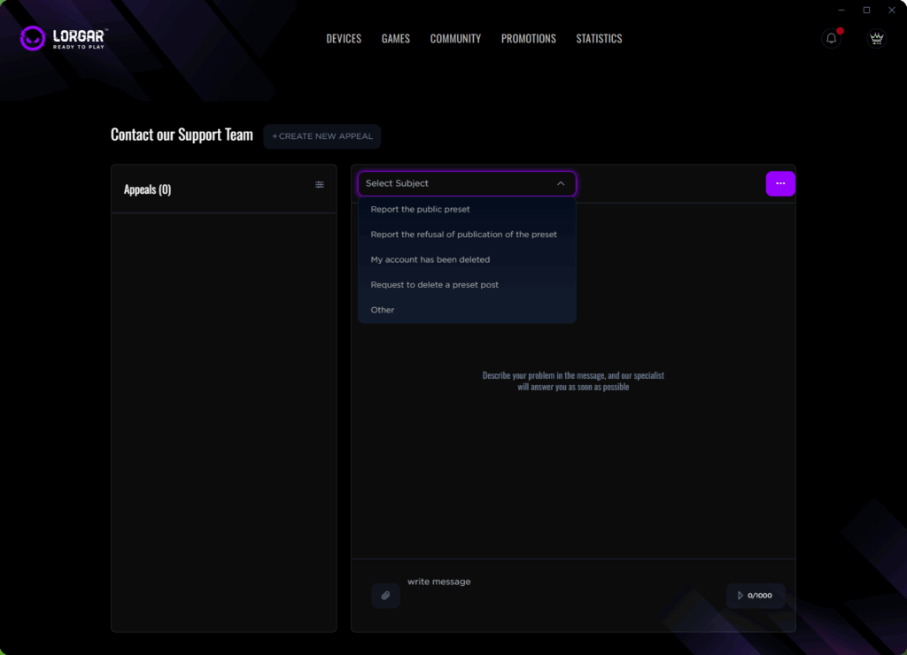 Так само продуманий й розділ підтримки. Він справді корисний як для новачків, так і для досвідчених геймерів. Попередньо категоризовані типи проблем (проблеми з пресетами, видалення акаунта, проблеми з публікацією) означають, що ваш запит одразу потрапляє до правильної команди. Більше не потрібно пояснювати підтримці першого рівня, що ви знаєте, що таке оновлення прошивки.